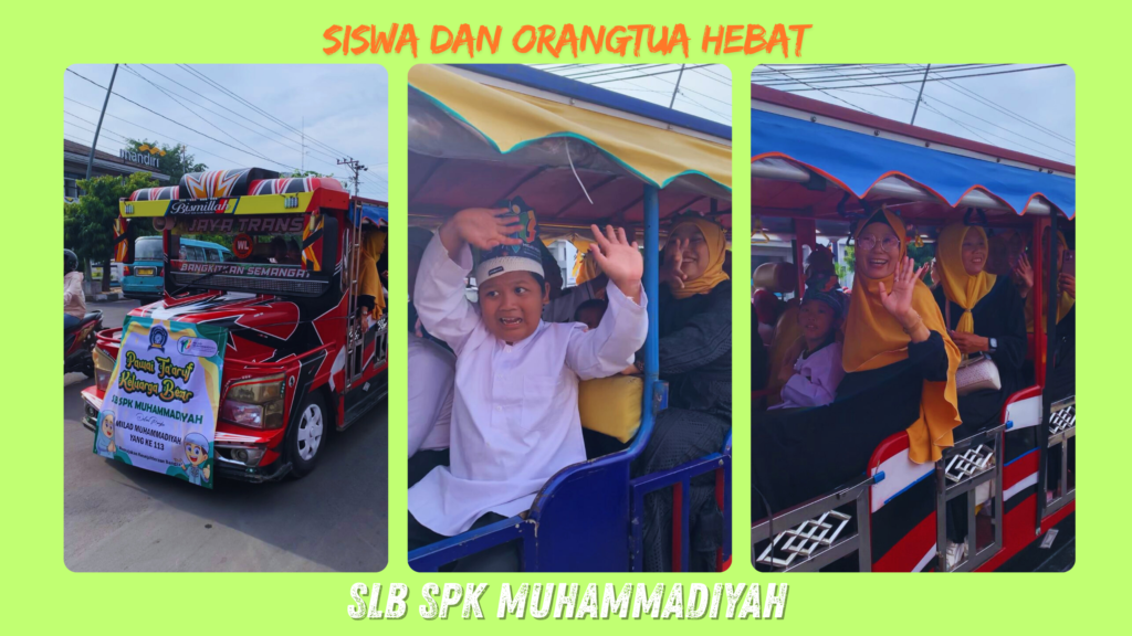 Tak kalah meriah, para orang tua murid turut serta memeriahkan pawai dengan menaiki rombongan mobil odong-odong yang dihias meriah dengan balon dan ornamen warna-warni. Keterlibatan orang tua ini menjadi bukti nyata dukungan dan kekompakan keluarga besar SLB SPK Muhammadiyah dalam setiap kegiatan sekolah.